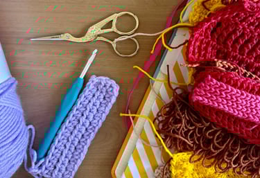Crochê feito à mão. Peças únicas e exclusivas, feitas com materiais diferenciados - e algumas peças feitas com materiais reciclados.